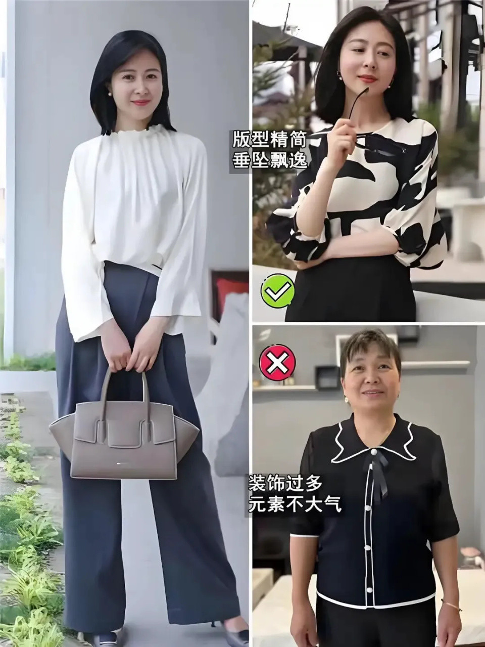 所以我们穿衣打扮,尽量要懂得做减法,搭配版型精简垂直飘逸,穿在身上会更好看,装饰过多元素不大气,怎么穿都显老显土。