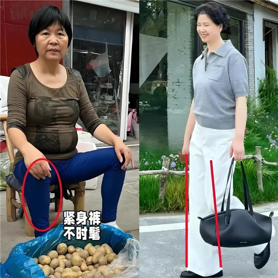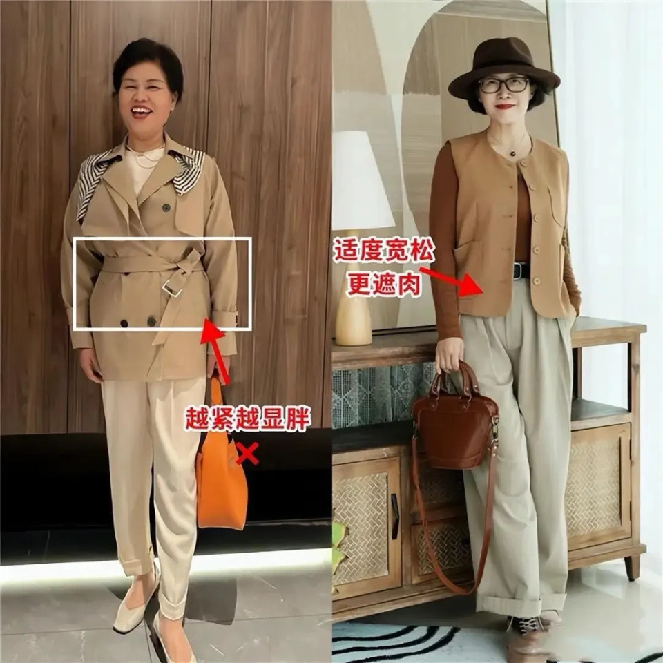我们就看下面这两位素人的穿搭对比,就可以得出一个非常明确的答案,人到中年容易发福发胖很正常,毕竟身体的新陈代谢开始变得缓慢,如果还在选择紧身的衣服,加上紧身裤就不时髦了。